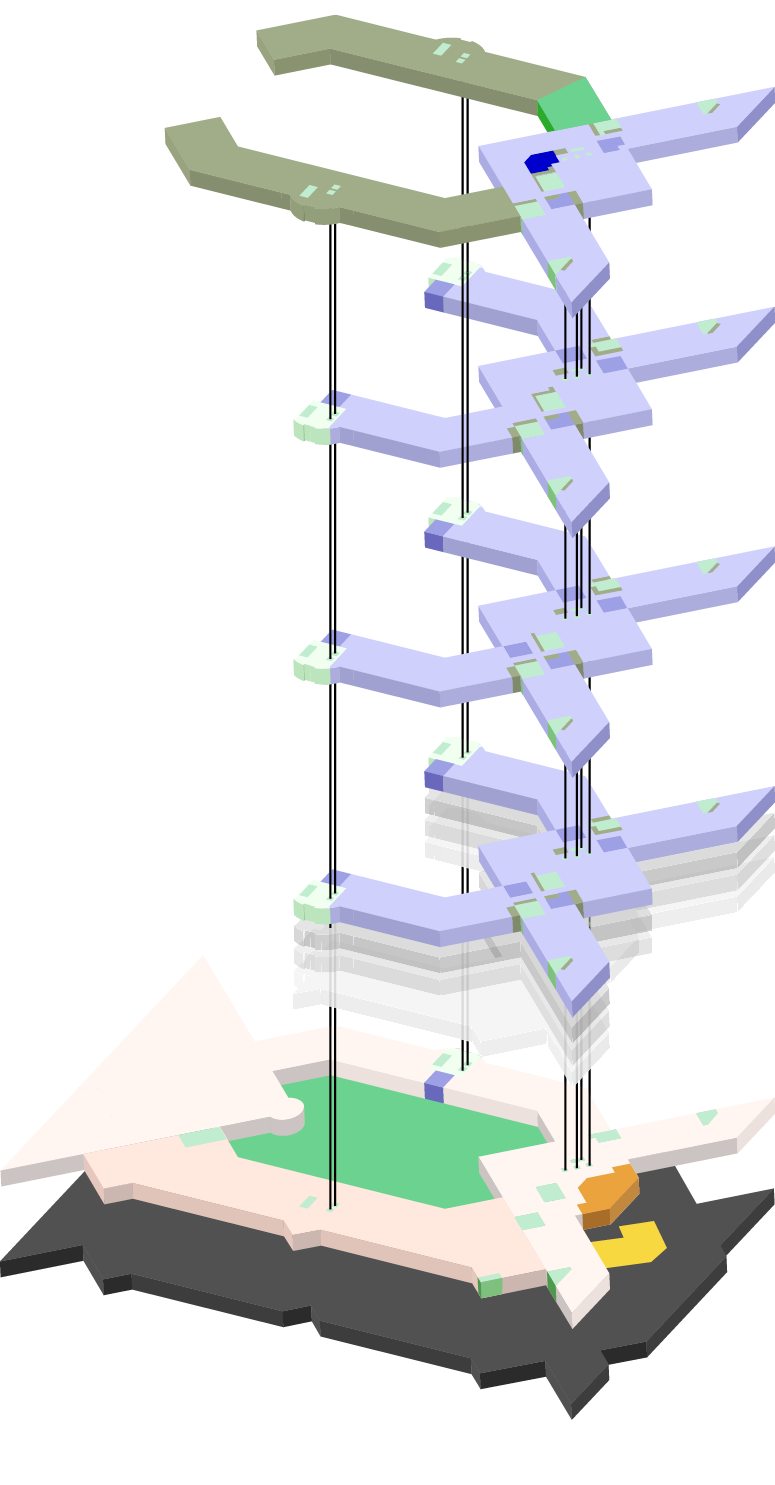 Son hall d’accueil, installé dans l’aile sud,devient un cœur de vie et de circulations, insufflant un nouveau tempovers la restauration, le pôle fitnessou encore le cœur d’îlot et ses terrasses en bois.